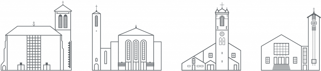 Im Ergebnis erstrahlen die vier Kirchenpiktogramme nun in einem modernen und zeitlosen Design. In Anlehnung an das vorhandene Farbkonzept, welches sich auch im Pfarrei-Logo oder im Pfarreimagazin wiederfindet, ist jede Kirche in einer anderen Farbe abgebildet. Durch das Zusammenspiel soll das bunte und abwechslungsreiche Gemeindeleben der Pfarrei sichtbar gemacht werden.